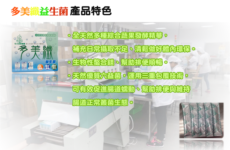 - 成分: 六益菌、生物性螯合鎂(胜肽螯合鎂)、複合蔬果發酵精華、果寡糖、木寡糖、半乳寡糖
